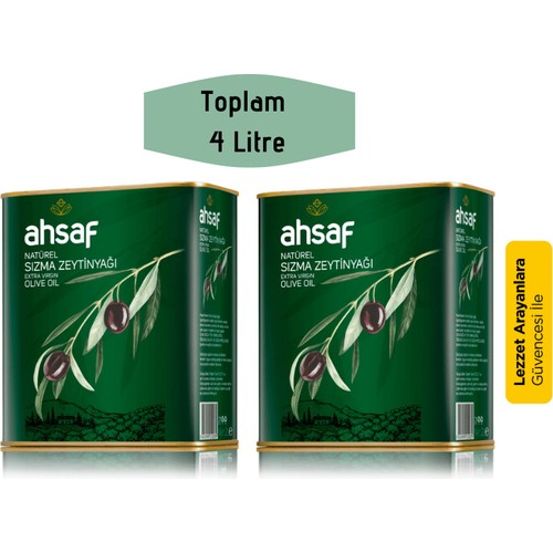 Ahsaf Natürel Sızma Zeytinyağı 2L-Teneke (2'li Ekonomik Paket)