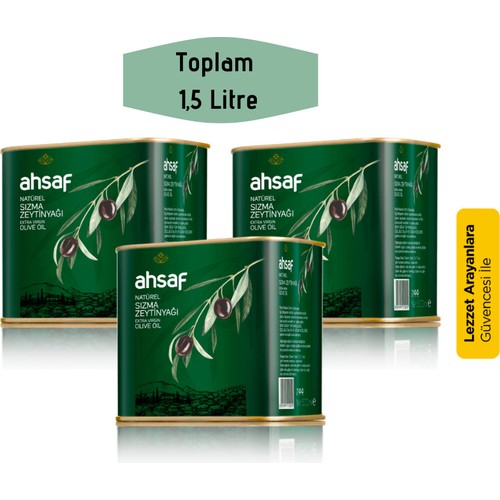 Ahsaf Natürel Sızma Zeytinyağı 500 ml -Teneke (3'lü Ekonomik Paket )