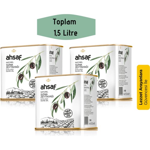 Ahsaf Soğuk Sıkım Natürel Sızma Zeytinyağı 500 ml-Teneke ( 3'lü Ekonomik Paket )