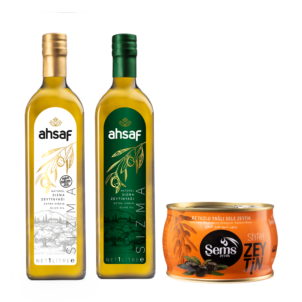 Soğuk Sıkım Natürel Sızma Zeytinyağı 1L Cam +Yağlı Siyah Sele Zeytin 300 Gr 291-320 Kalibre + Natürel Sızma Zeytinyağı 1L -Cam (3'lü Ekonomik Paket)