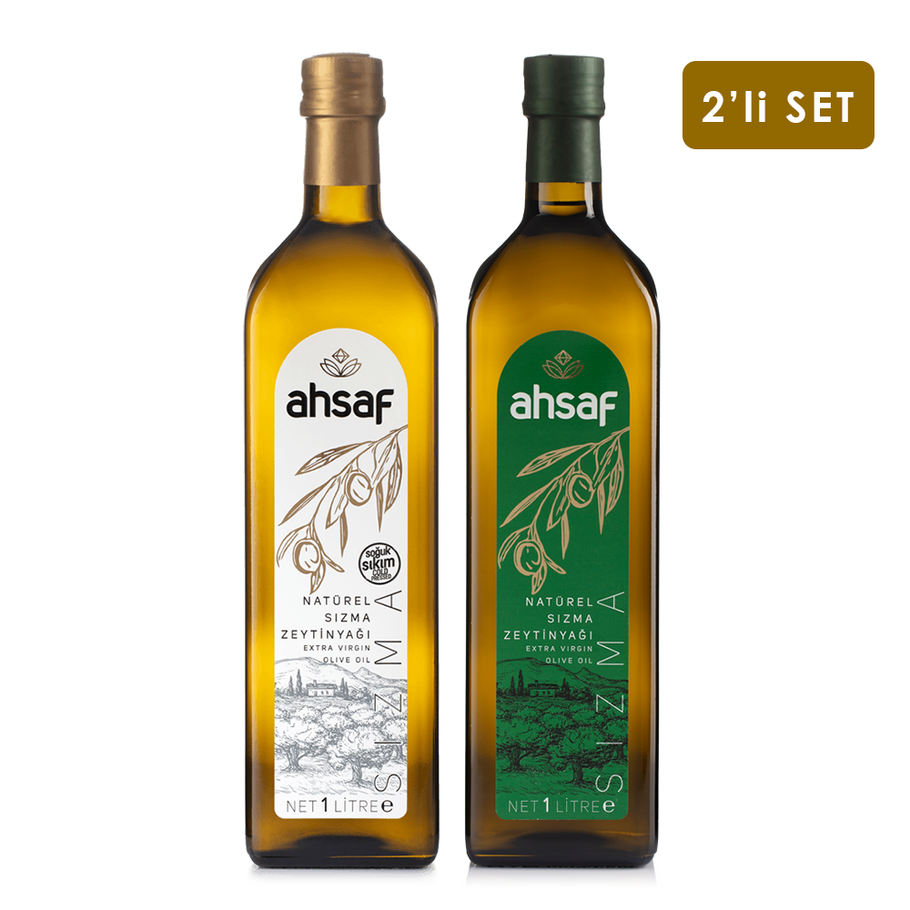 Soğuk Sıkım Zeytinyağı 1L Cam + Natürel Sızma Zeytinyağı 1L -Cam (2'li Ekonomik Paket)