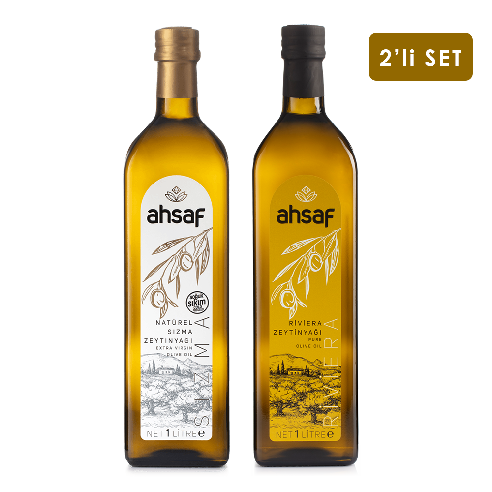 Soğuk Sıkım Zeytinyağı 1L Cam + Riviera Zeytinyağı 1L -Cam (2'li Ekonomik Paket)